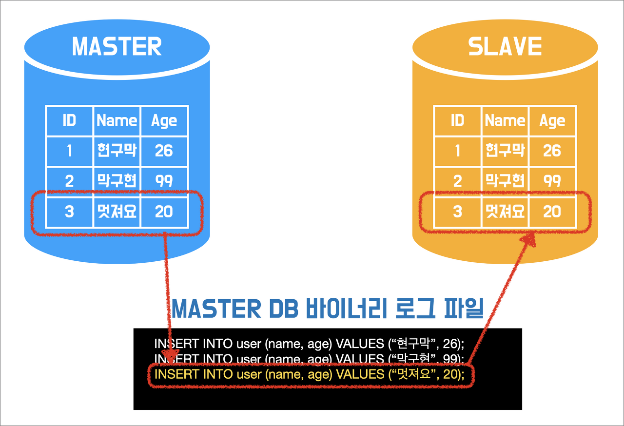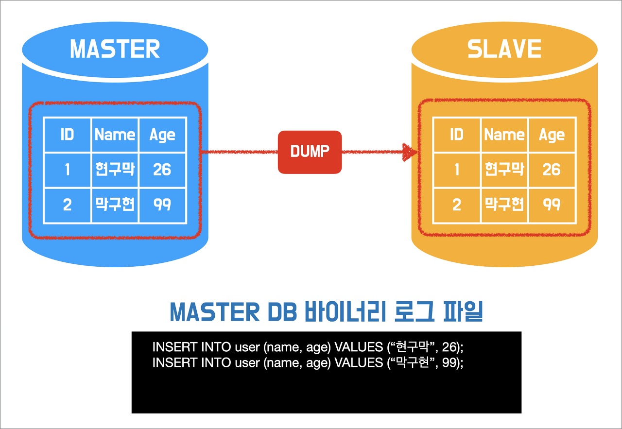 또한 연결에 성공했음에도 연결 성공시점의 Master 서버와 Slave 서버의 스키마, 테이블 구성이 다를 경우 Slave 서버는 Master 서버가 실행한 쿼리를 읽었다가 에러를 일으키고 replication 수행을 중지하게 된다. (Master 서버의 상태를 복제하는것이 아닌, Master 서버가 수행한 쿼리를 따라서 수행하기 때문)