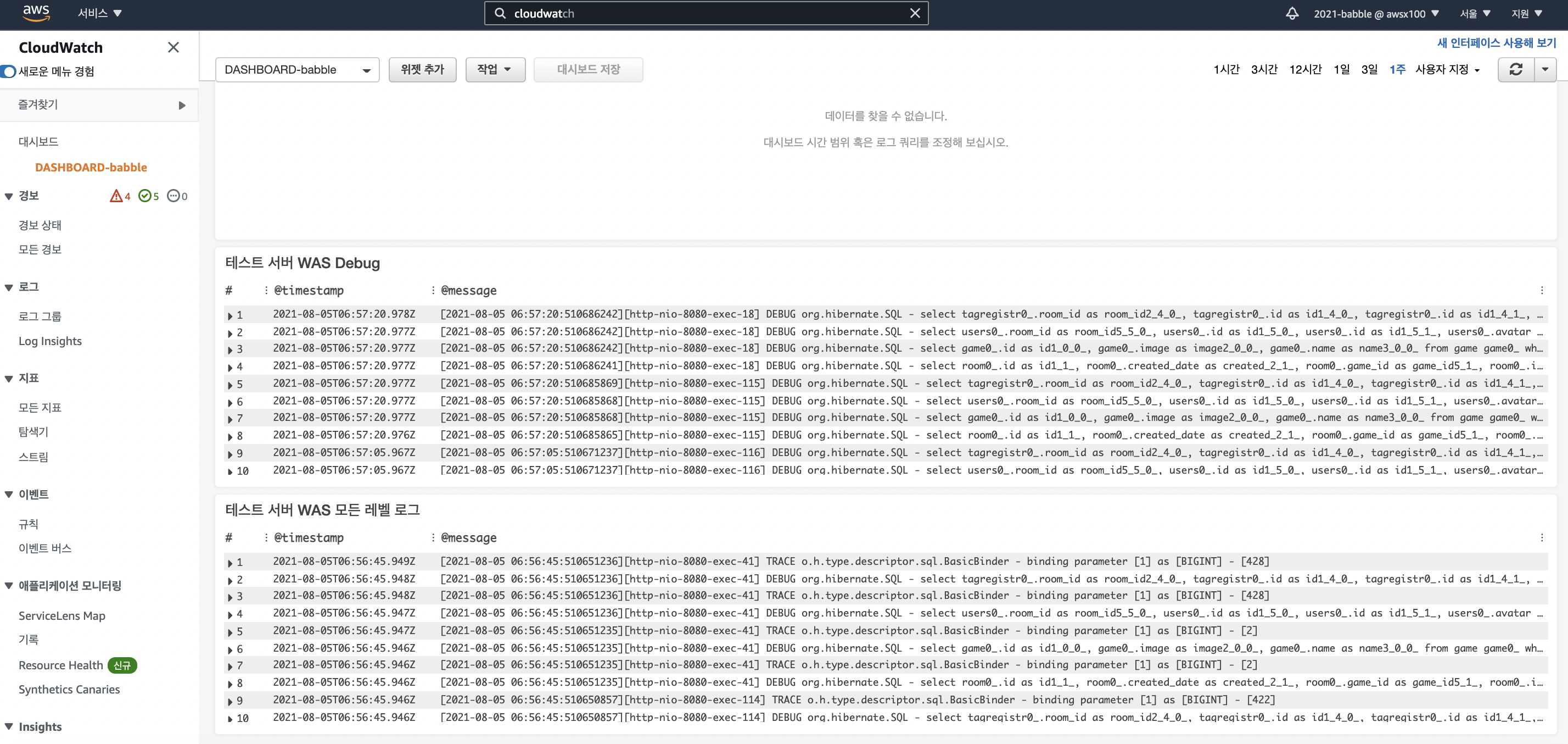 일반적으로 로그 시각화 용도로 ELK(Elastic Logstash Kibana) 스택 중 하나인 Kibana, 매트릭스 지표 시각화에 특화된 Grafana를 많이 사용하지만, 저희 팀 프로젝트는 AWS를 사용하는 환경이고, CloudWatch에서도 필요한 기능이 모두 제공되었기 때문에 CloudWatch를 통해 로그 시각화를 진행했습니다.