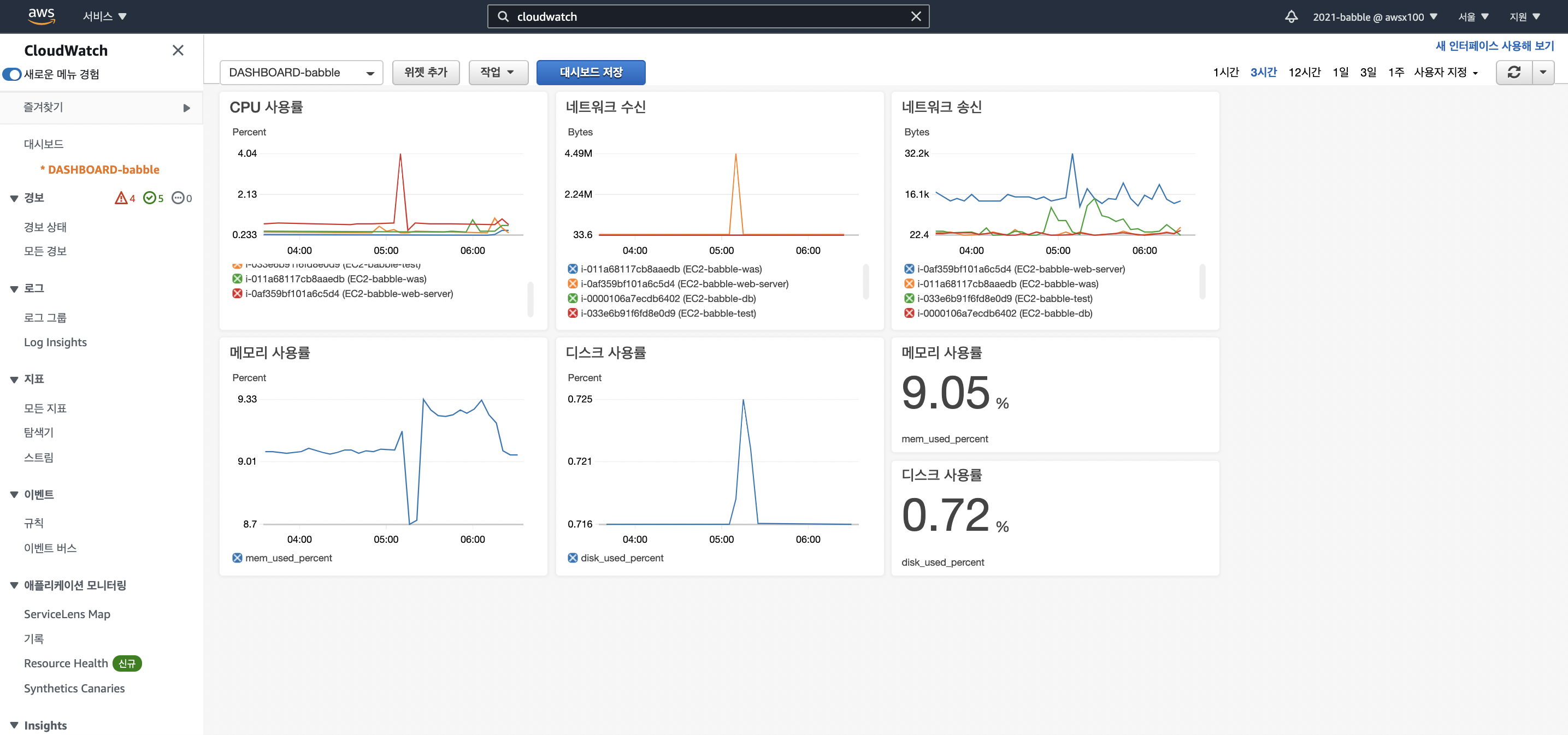 10. AWS 에서 Cloud Watch 의 대시보드로 이동합니다.